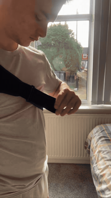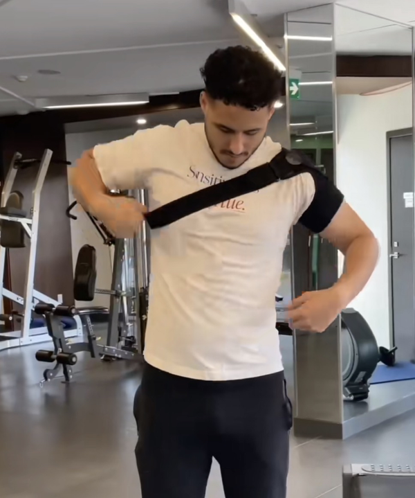 Dank verstellbarer Riemen lässt sich der Schulterheld® individuell anpassen – für sicheren Halt und maximalen Komfort, egal ob im Alltag, beim Sport oder in der Reha.