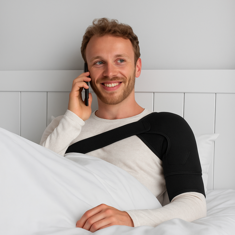 Ja. Der Schulterheld übt nur sanften, physiologisch abgestimmten Druck aus, um deine Schulter zu stabilisieren – ohne einzuschränken oder zu reiben.